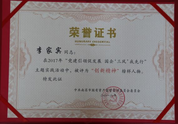 在2017年度國資委組織的“黨建引領(lǐng)促發(fā)展 國企“三風(fēng)”我先行”主題實(shí)踐活動中,陳國明同志被評為“優(yōu)秀工作者”,李家兵同志被評為“創(chuàng)新精神”榜樣人物,徐棽同志被評為“工匠精神”榜樣人物。